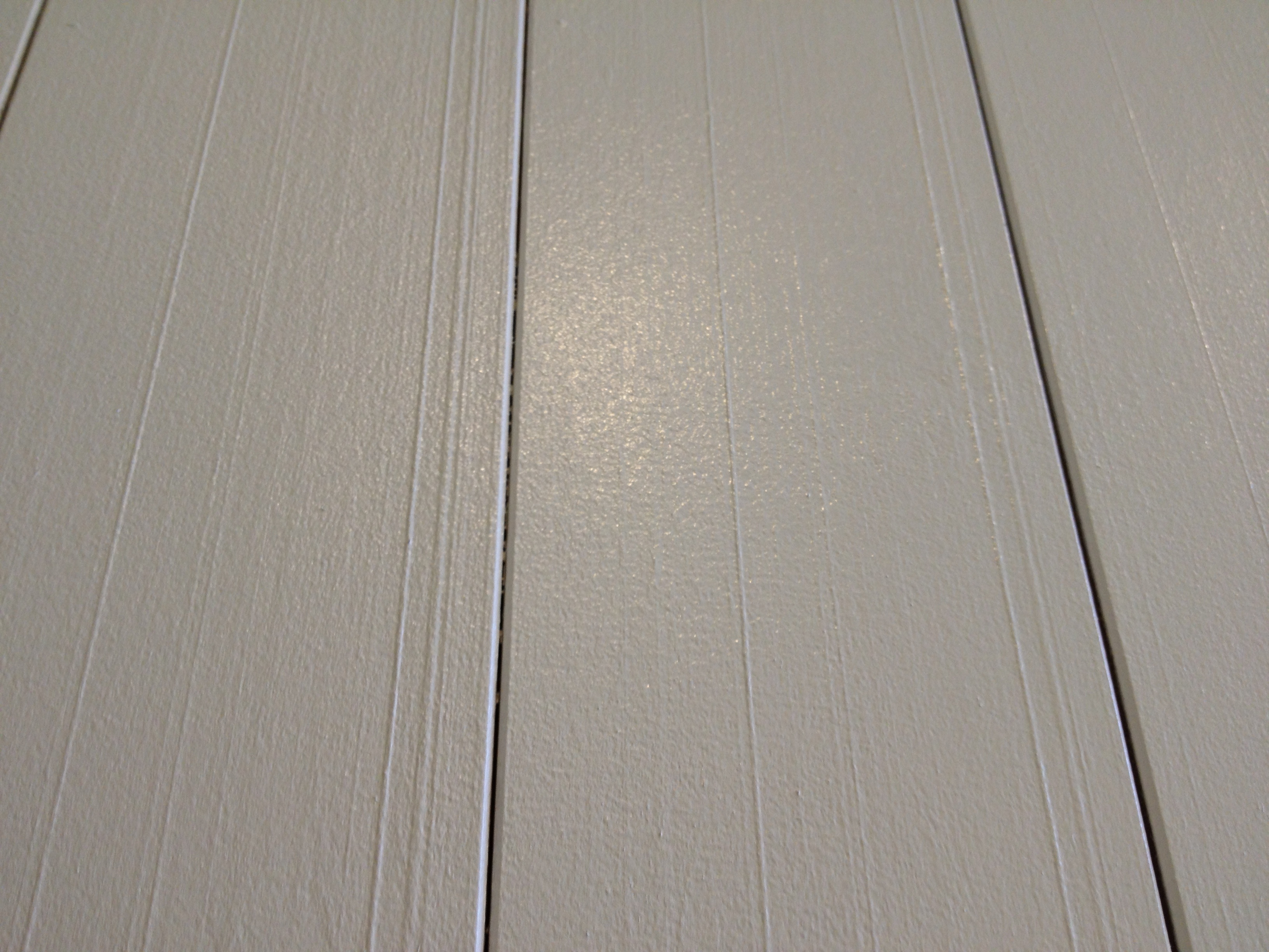 Then we used two coats of Behr’s primer+paint, in Polar Bear White, semi-gloss latex. I was surprised that lots of mill lines showed up after painting. Nothing we can do about that, I guess.