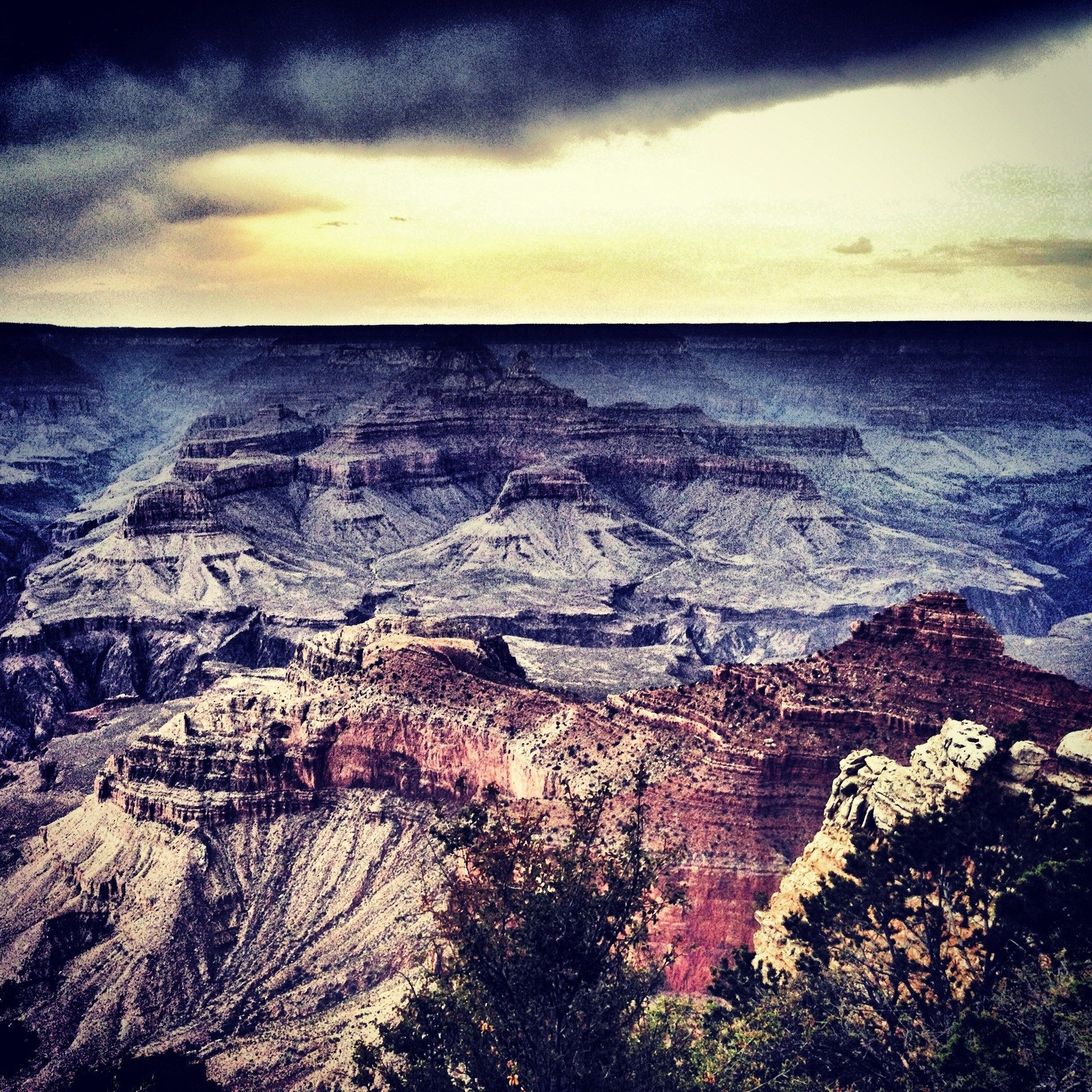 Dramatic skies over the Grand Canyon yesterday. More photos and adventures to follow tomorrow. I’m happily ensconced at the gorgeous La Posada Hotel on Route 66 – Currently undergoing some serious restorative hydro-therapy (aka the Jacuzzi tub). Colby is enjoying the tile floor. Good-night, cruisers!